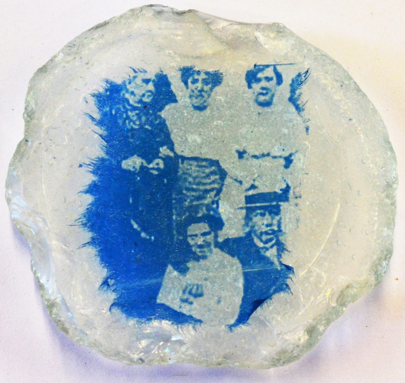 Cyanotype on tissue paper on found seashore glass fragment