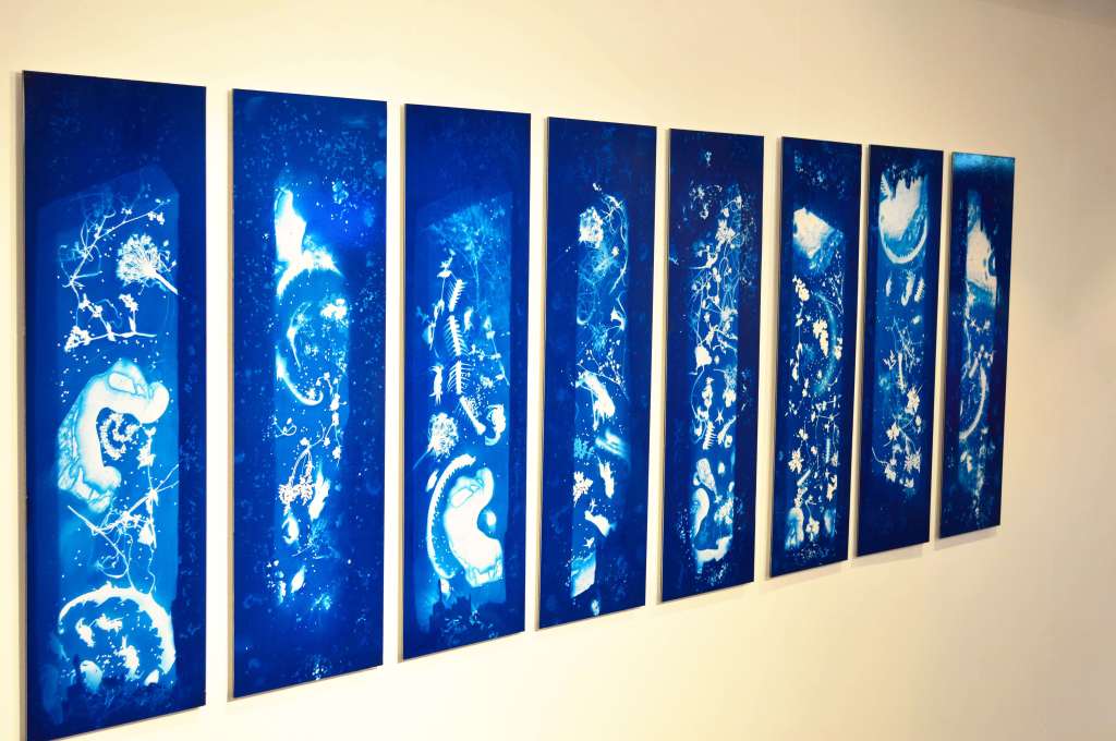 The slate slab fences, keep shore and field apart. Here they form screens on which maps and plants leave their mark, both natural and man-made, recalling fossils and ancient traces.