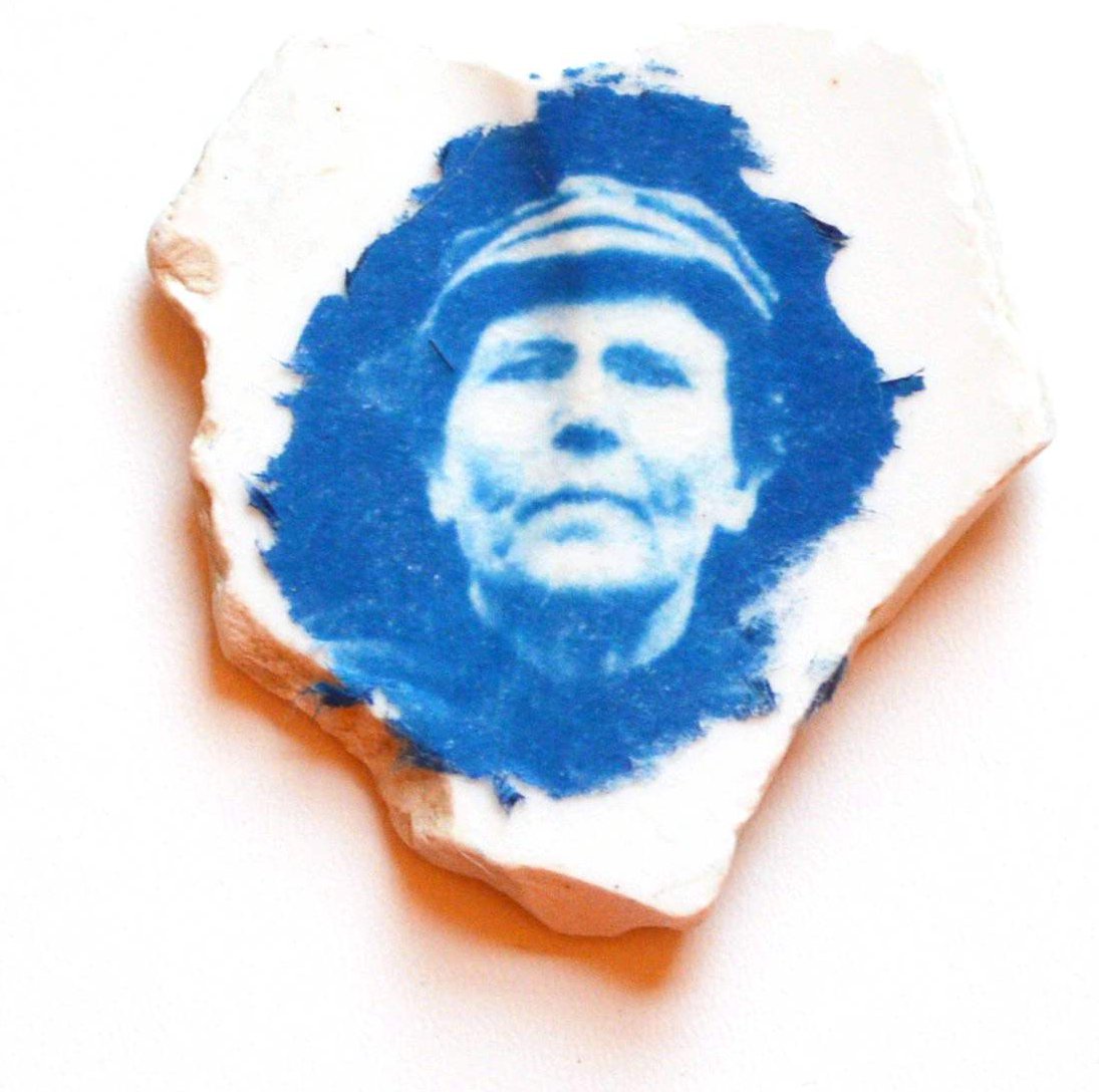 Fisher Woman Collage Cyanotype Ceramic Beach Shard