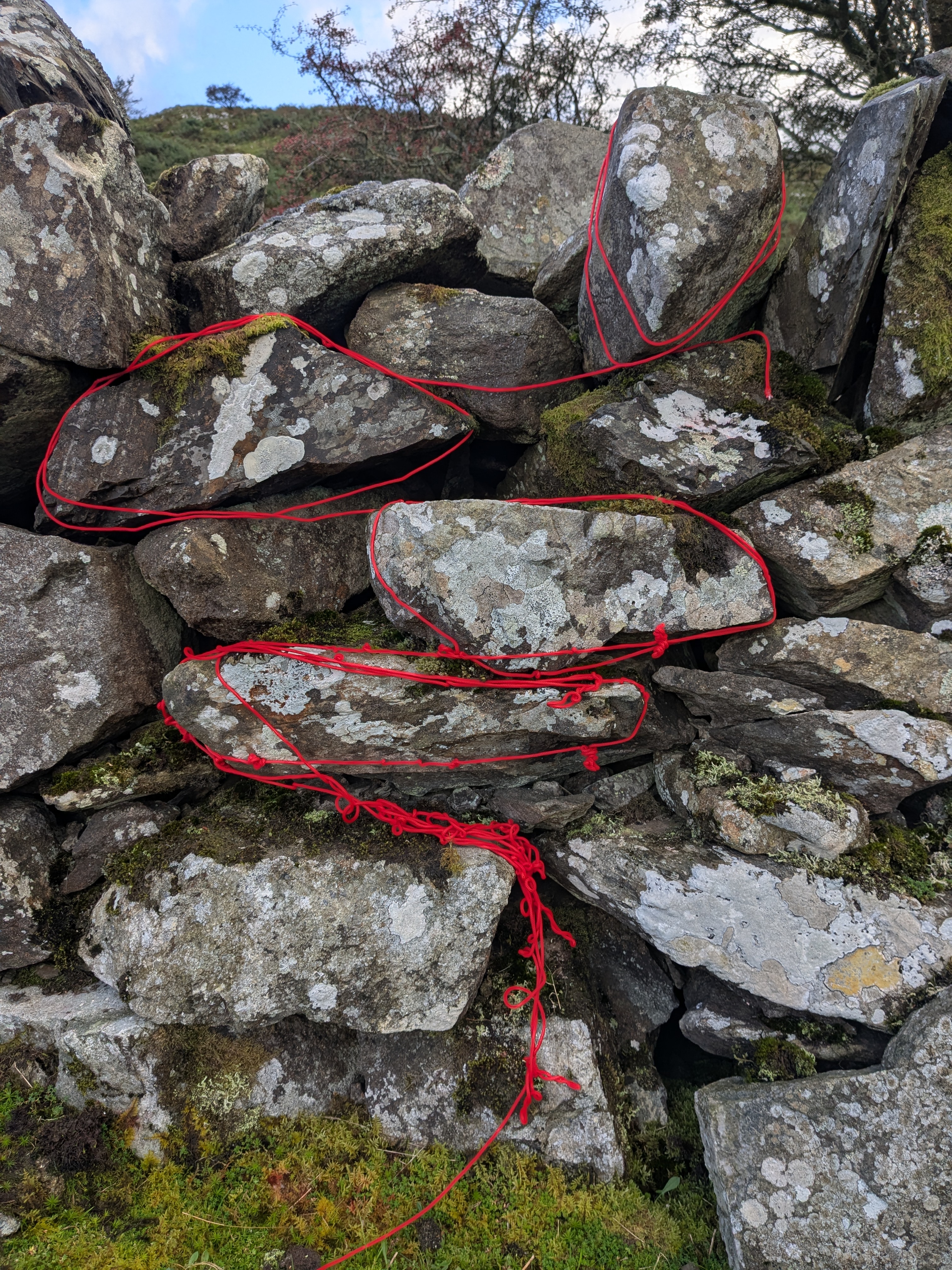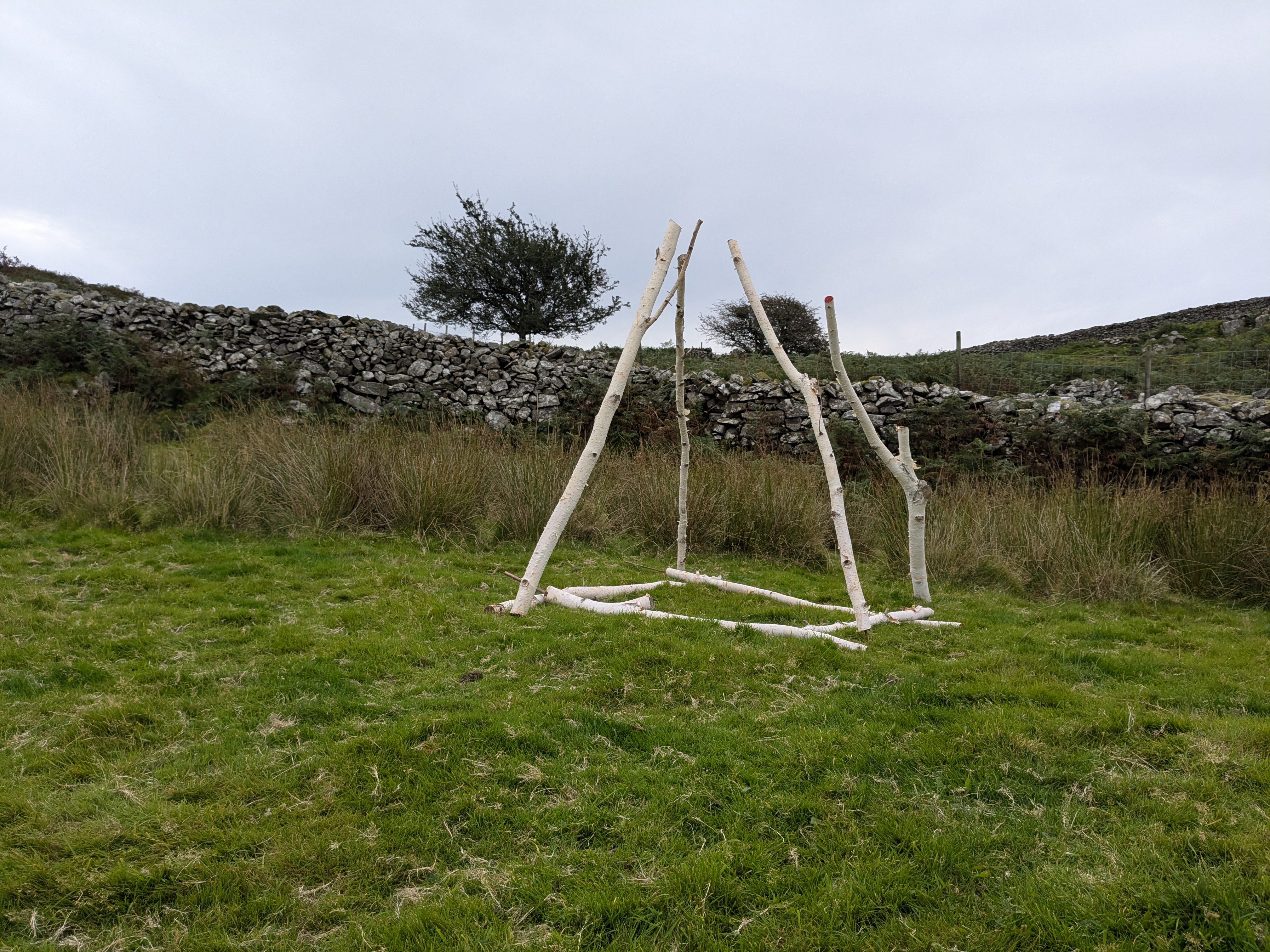 I moved the branches each day seeking different interactions and conversations in different parts of the field from the dry stone walls to the open spaces, photographing and videoing each iteration.