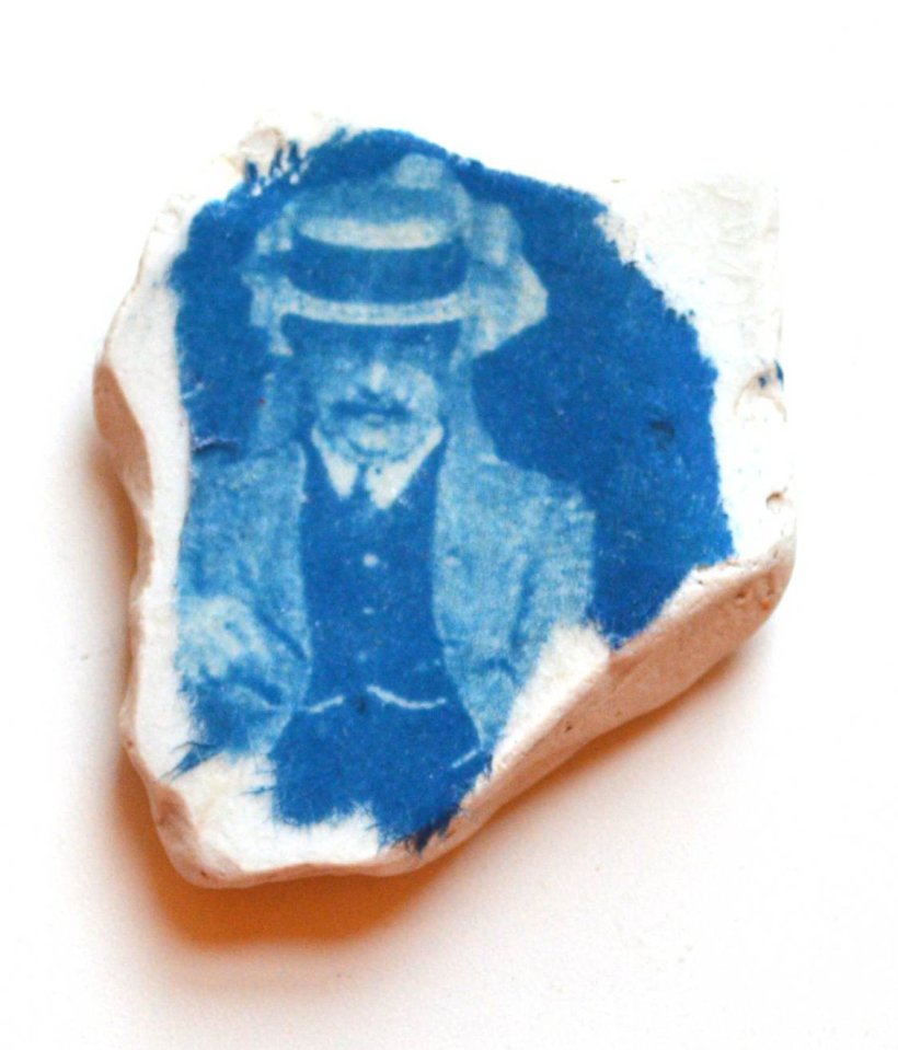 Man Collage Cyanotype Ceramic Beach Shard