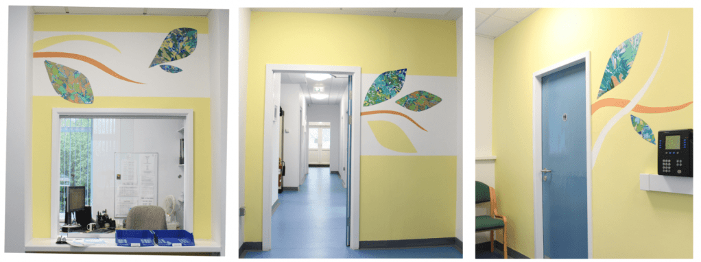 Commissioned with colleague Sarah Jane Richards to create a unified space for this re-located hospital department that would to give an immediate welcome that reflected the level of care that could be expected.