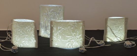 Selected letters were laser etched into wood, then rolled into porcelain paper clay and fired to create an embossed porcelain artefact.