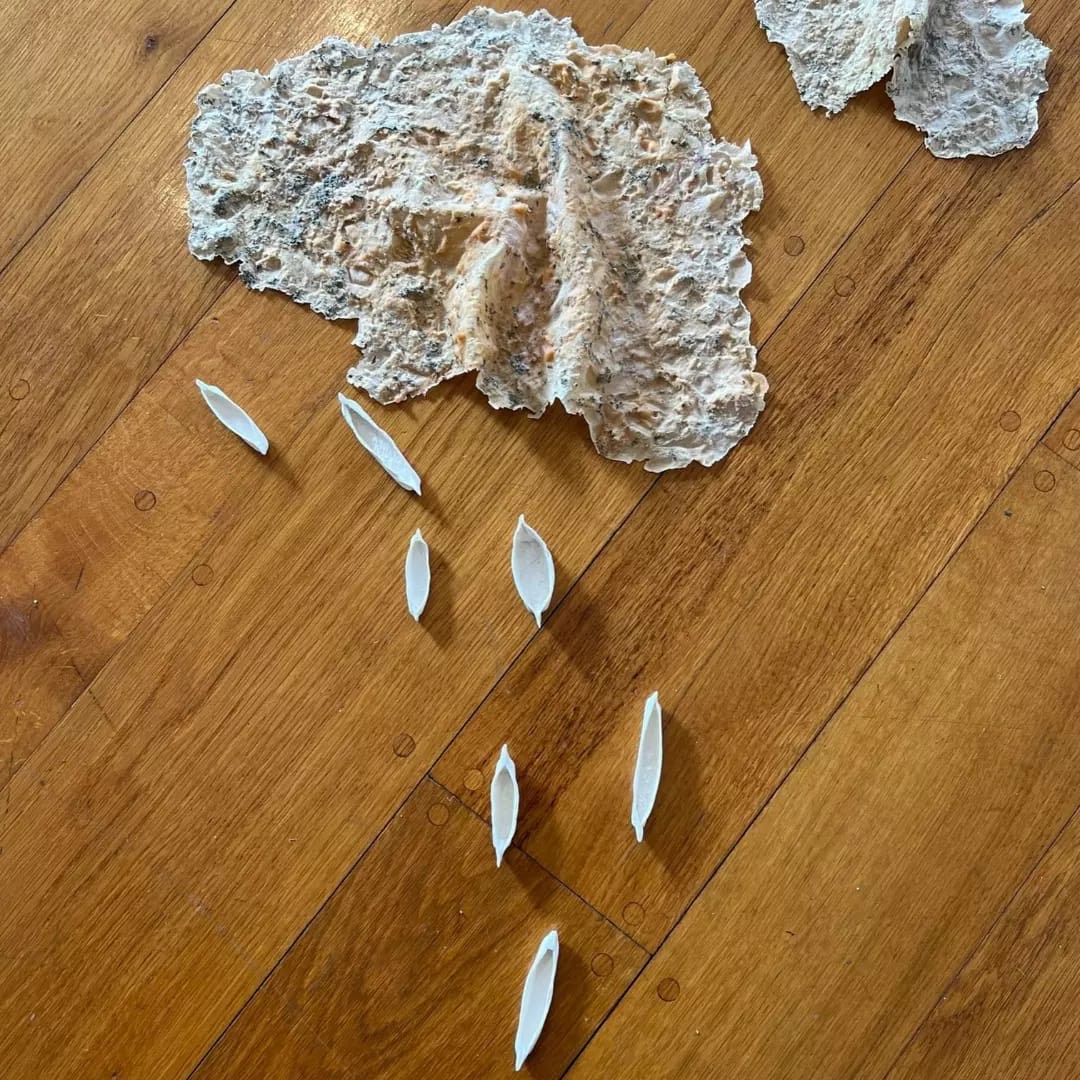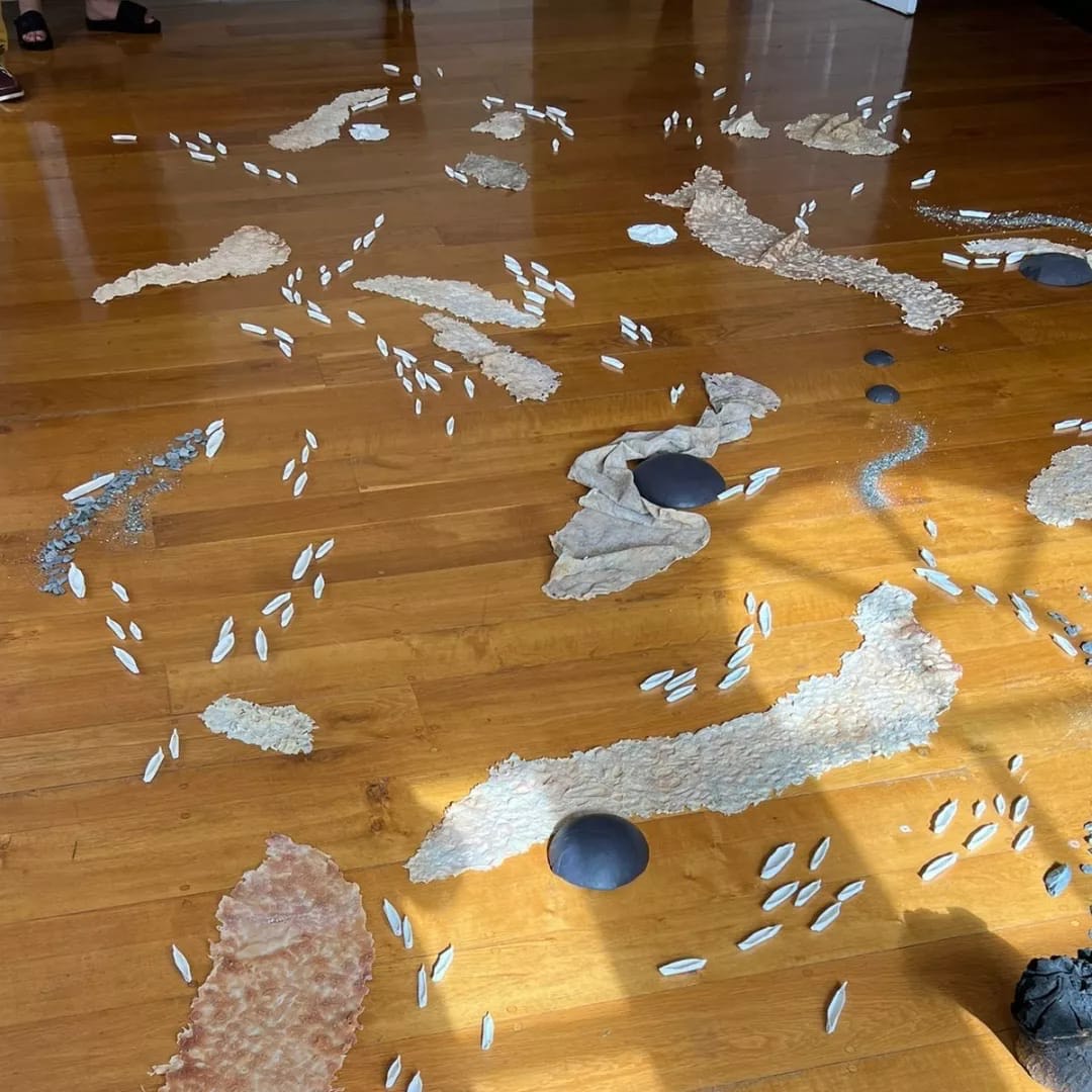 Tidal Estuary An interpretation of the movement of the ‘lost’ tidal estuary of Traeth Mawr flows across the floor. Scores of tiny porcelain boats move both as boats and as representation of water and currents moving around the latex islands and sand banks. Share this: Click to print (Opens in new window) Print Like Loading...